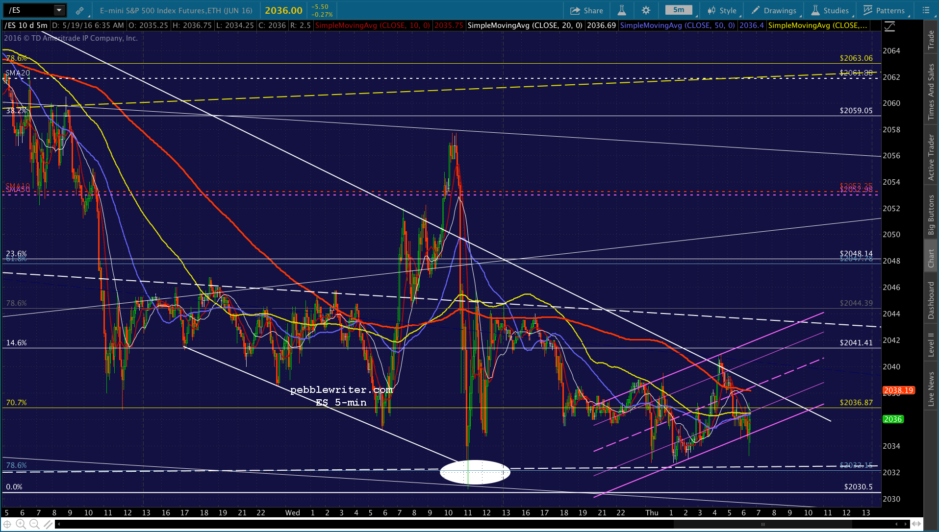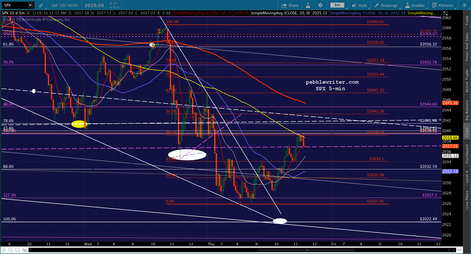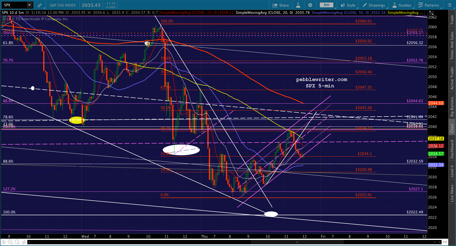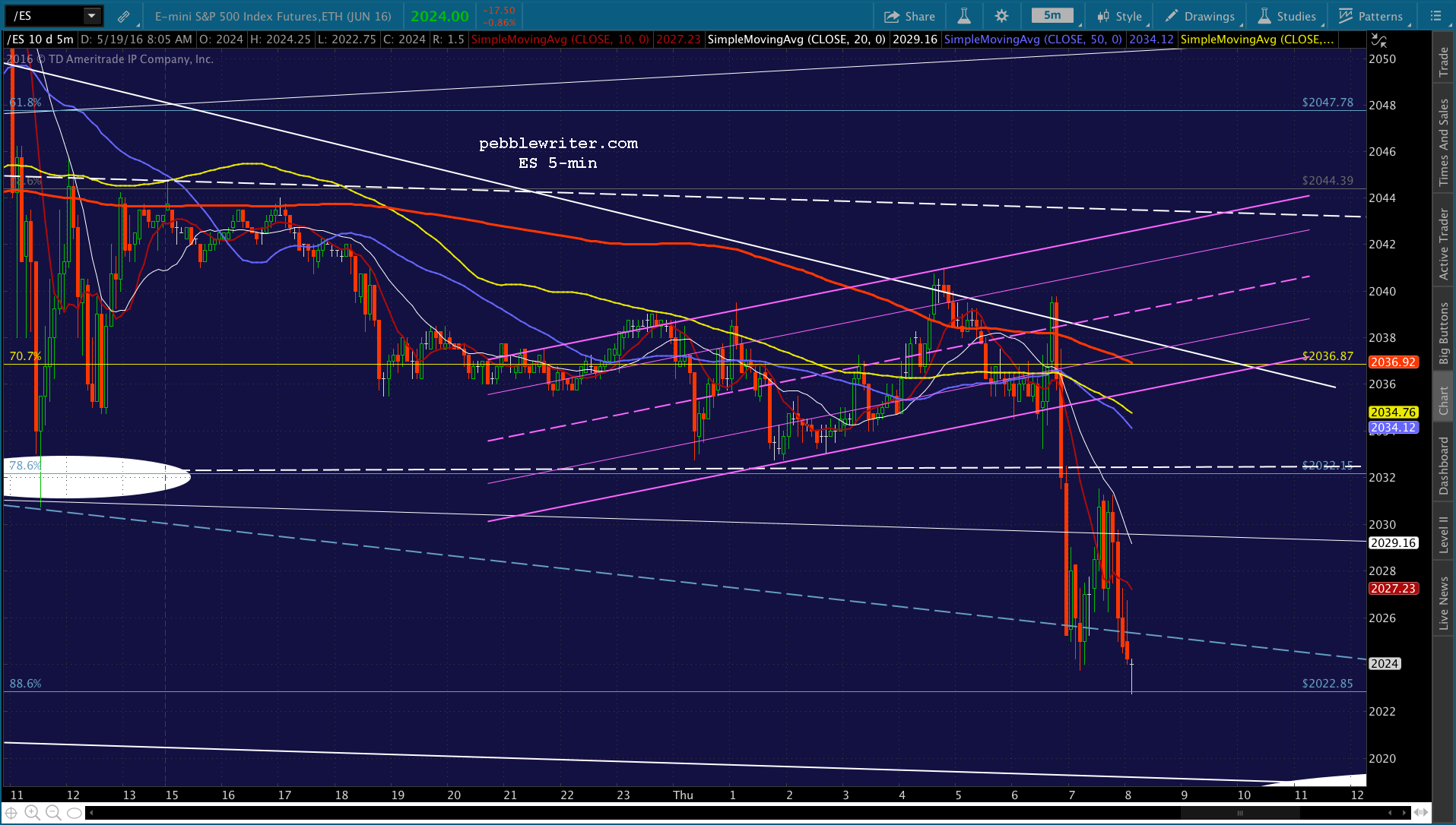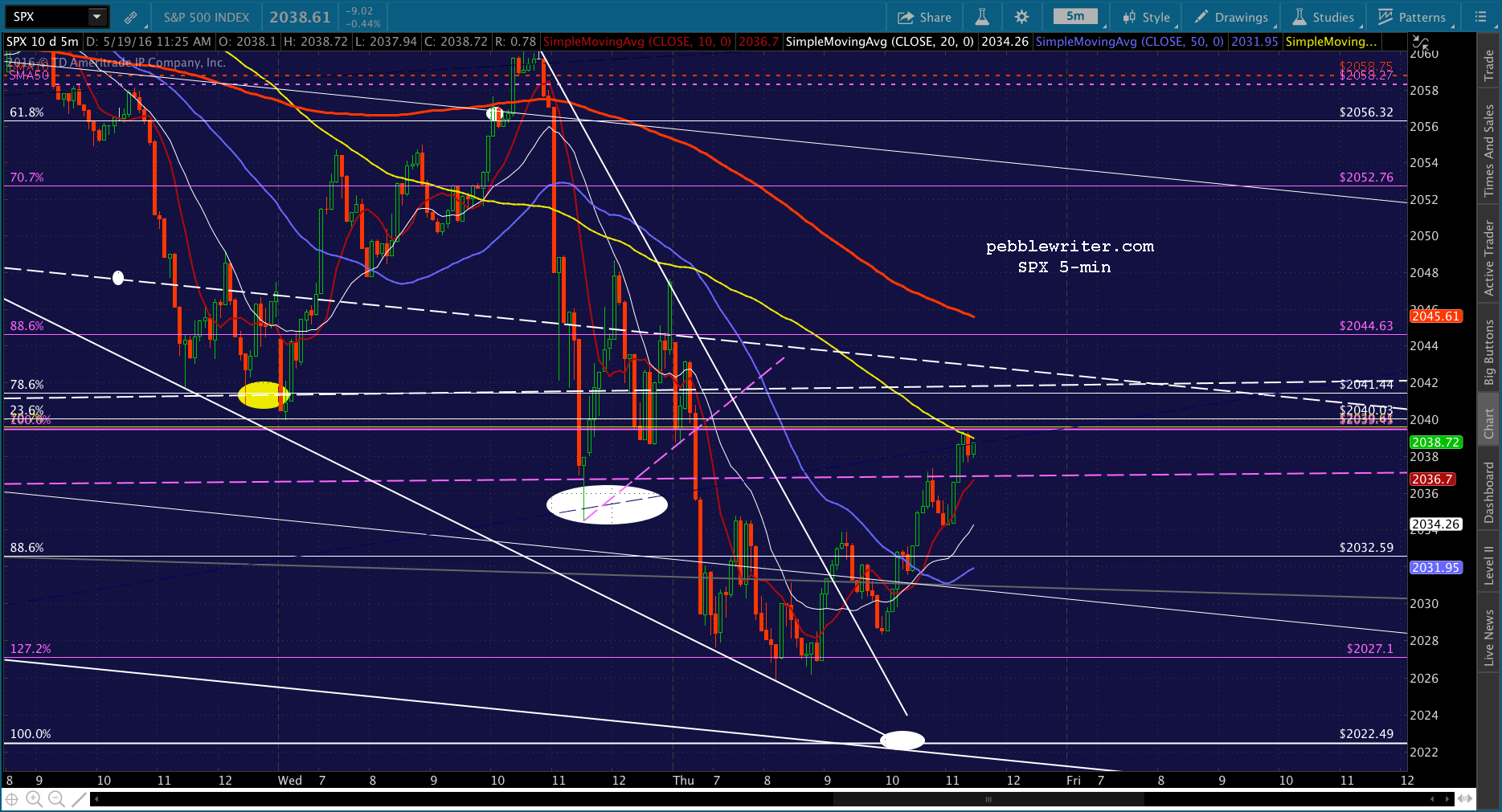 Getting stopped out here at the .886. Will take another look at shorting if we get to the SMA5 50 at 2035ish. Should be okay riding it out, as we’ll likely get a backtest to the SMA5 10/20 at 2029.76 anyway.