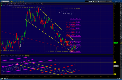 The VIX RSI channel I theorized a couple of months ago has played out very accurately, and appears to support the idea of VIX having more upside than just the falling wedge boundary.