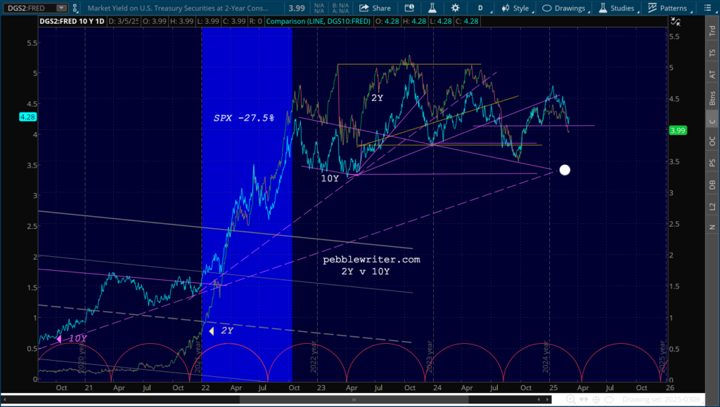 It’s hard to predict how accommodative OPEC+ will be. But, our interest rate cycle model suggests the 10Y will decline substantially by early 2026. Stagflation could certainly do that. In the meantime, however, the 10Y will have to deal with the rising red channel.