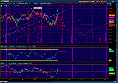 These targets dovetails perfectly with my “same as 2007” way of thinking in the near-term, and the resolution of the head and shoulder pattern developing longer-term. Note the H&S; pattern target indicates 1146, close to the 2.618 AD retracement.