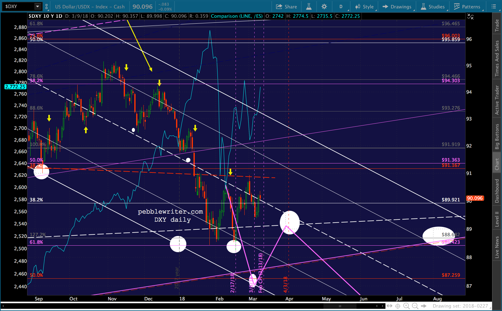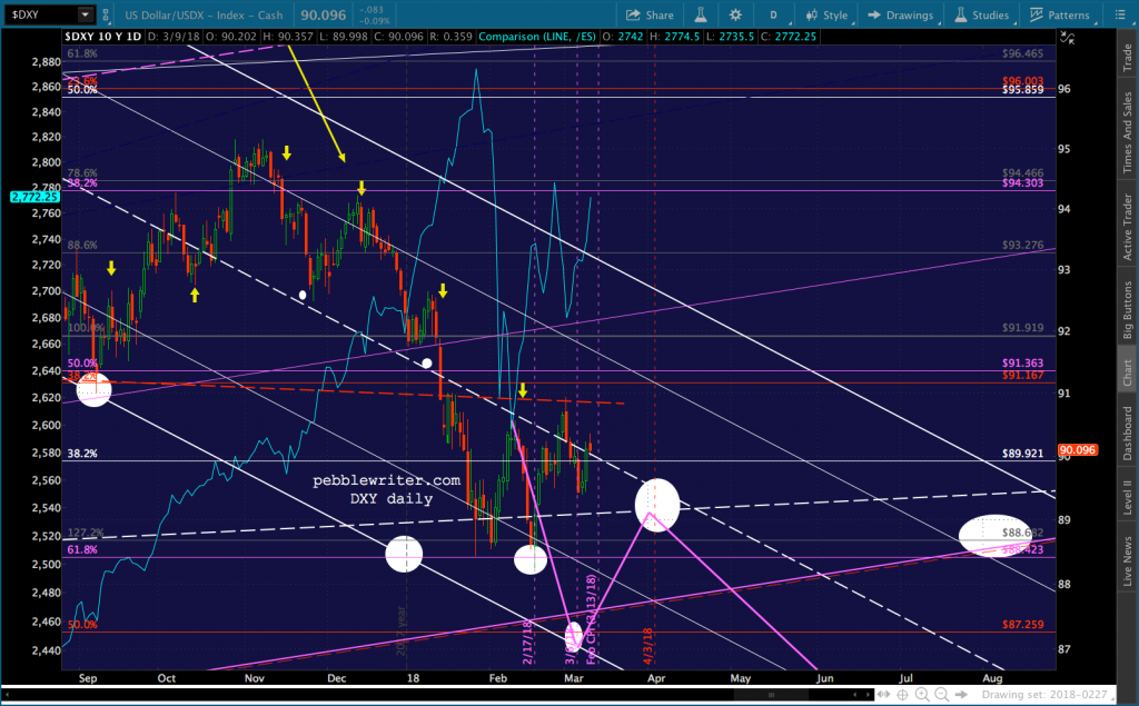 …especially as it relates to USDJPY. Note that USDJPY has popped back above the white midline and has a clear path higher if need be — perhaps to give VIX a chance to reset if CL/RB continue to slump.