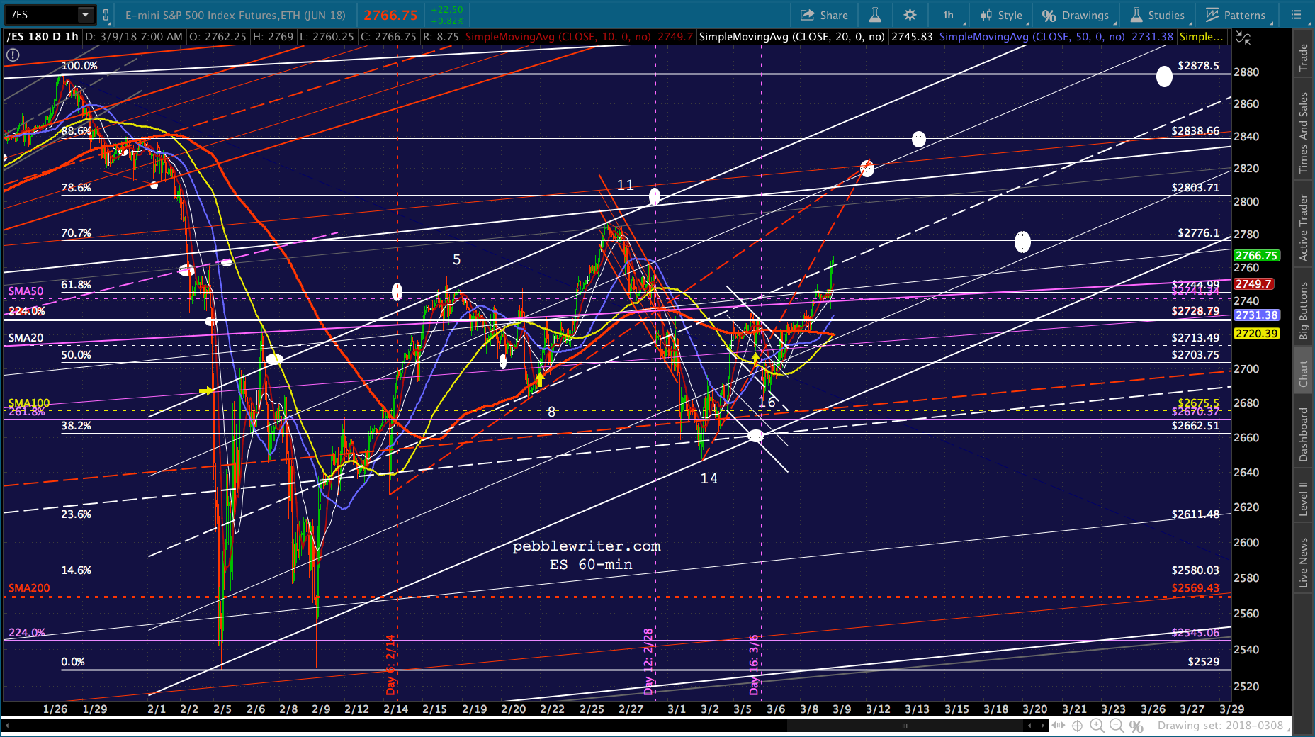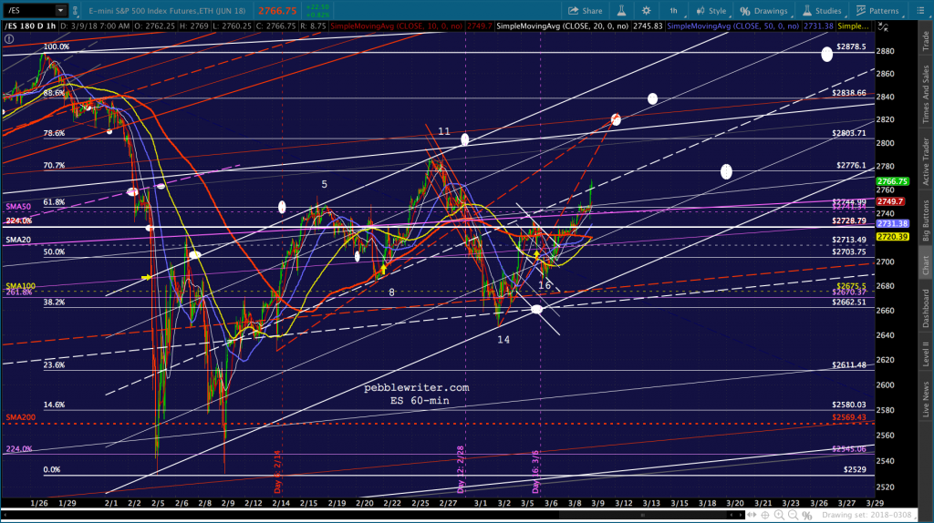 SPX, ES and VIX: SPX is up 1% today, needs to maintain 0.8%/day to reach 2834 by the 14th. That would put ES at 2838. also its .886.