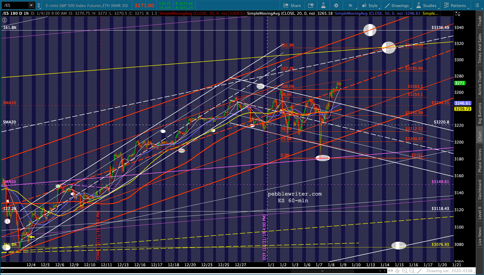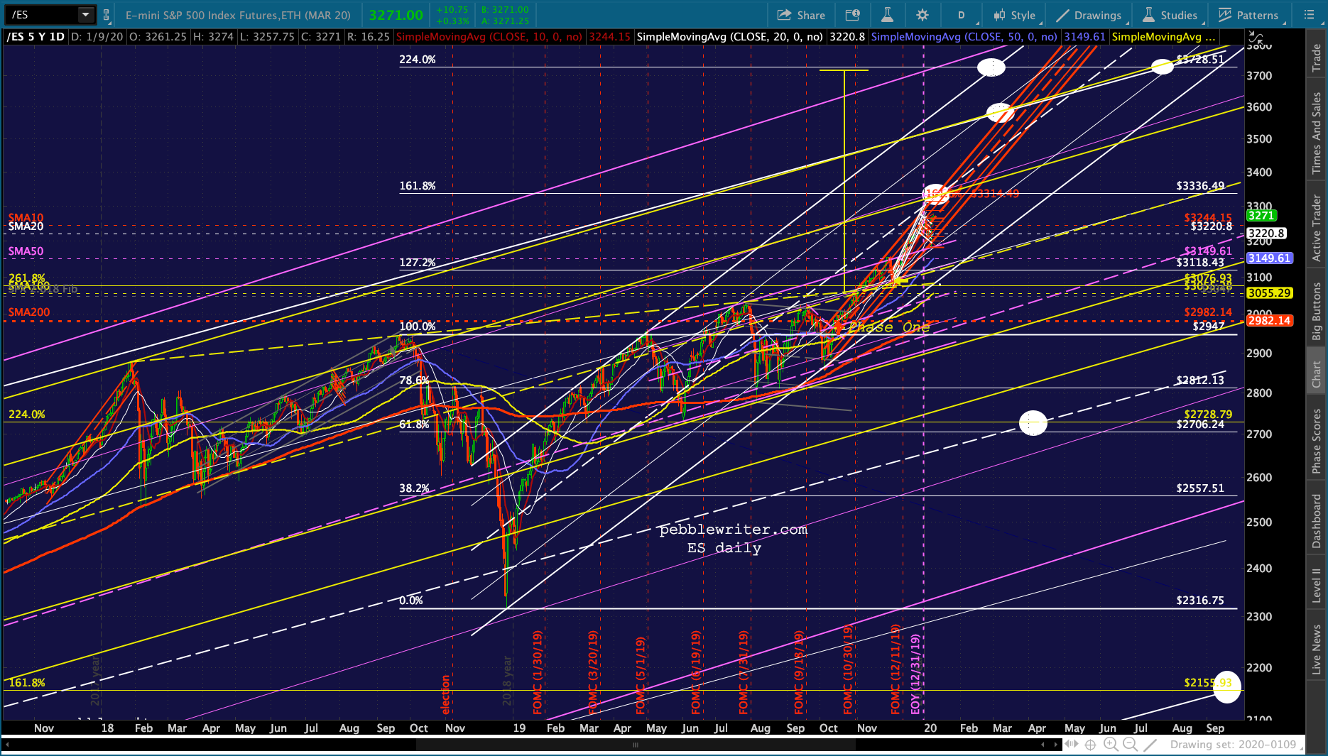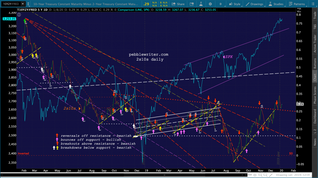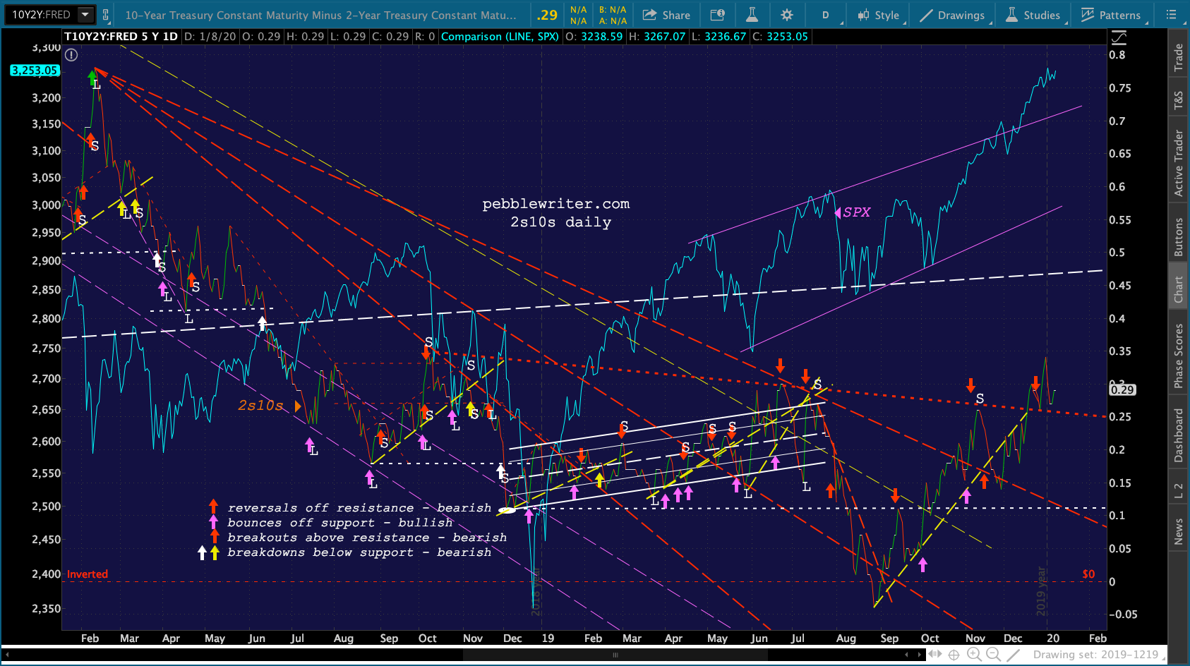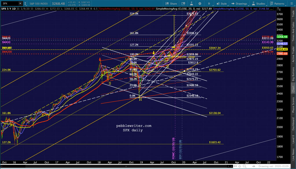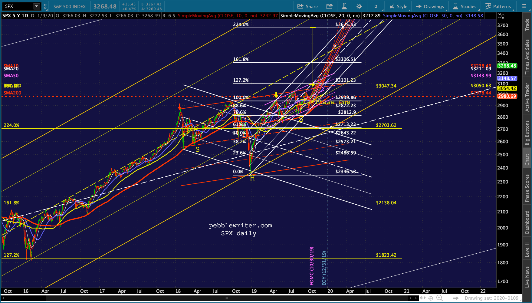 The downside targets remain on the chart as reference points and, in general, mark the point where rising channel bottoms intersect with major Fibs — some of which, like the 1.618 at 2138, have never been backtested.