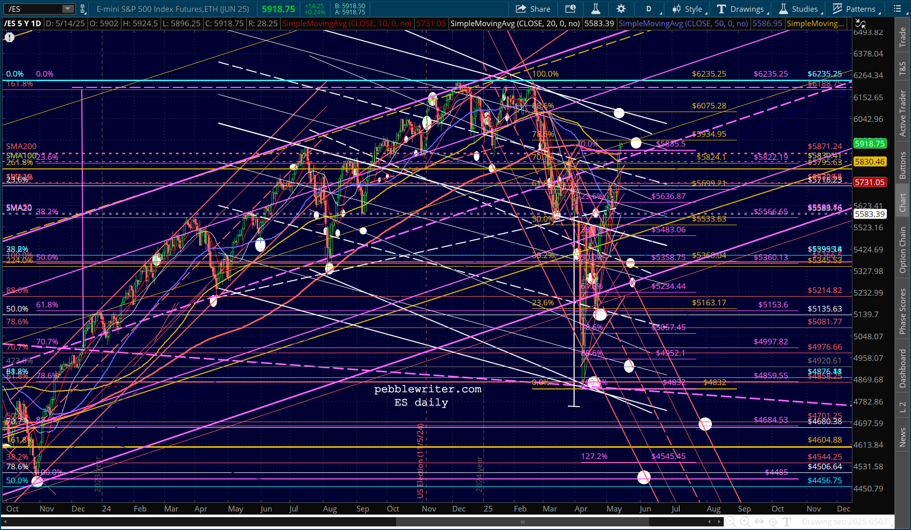 Futures are up modestly as ES tags its .786 Fibonacci retracement.