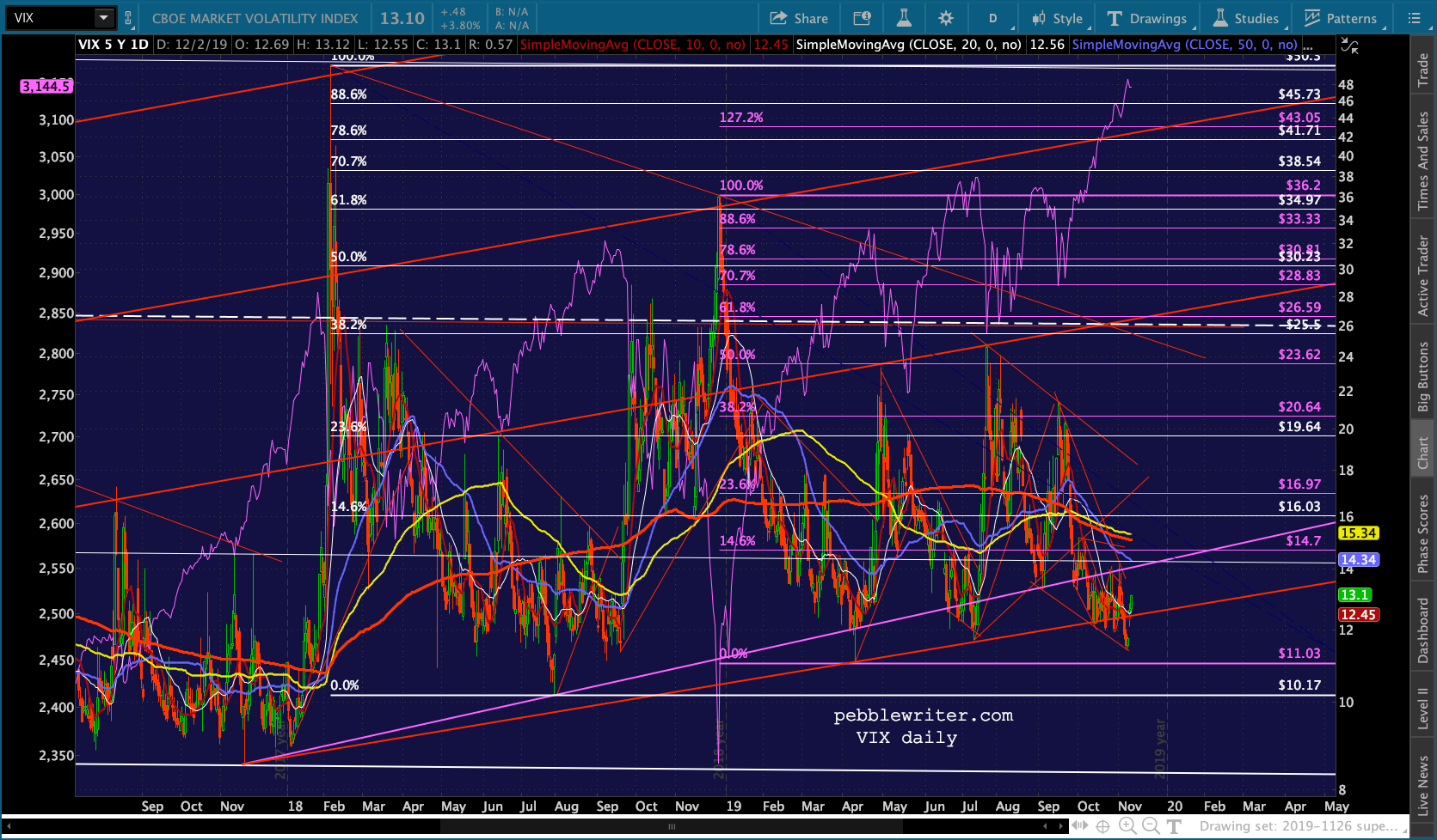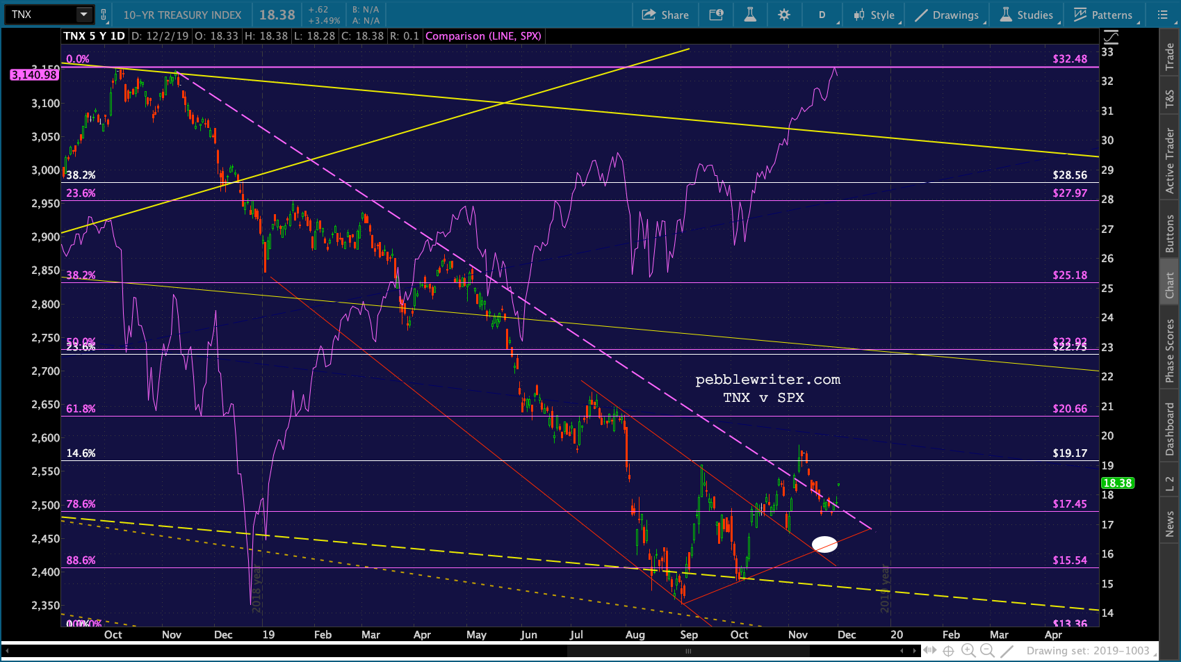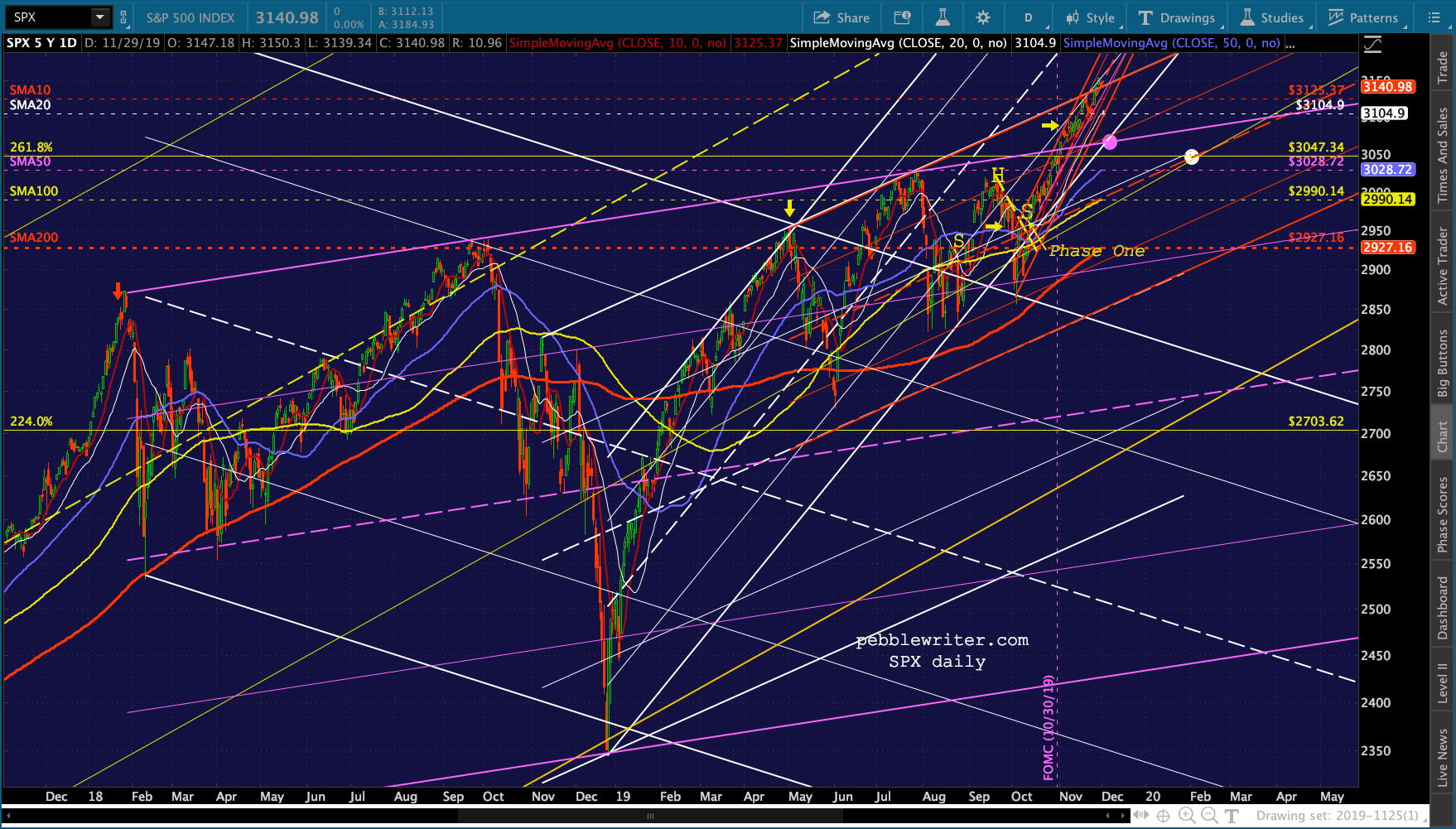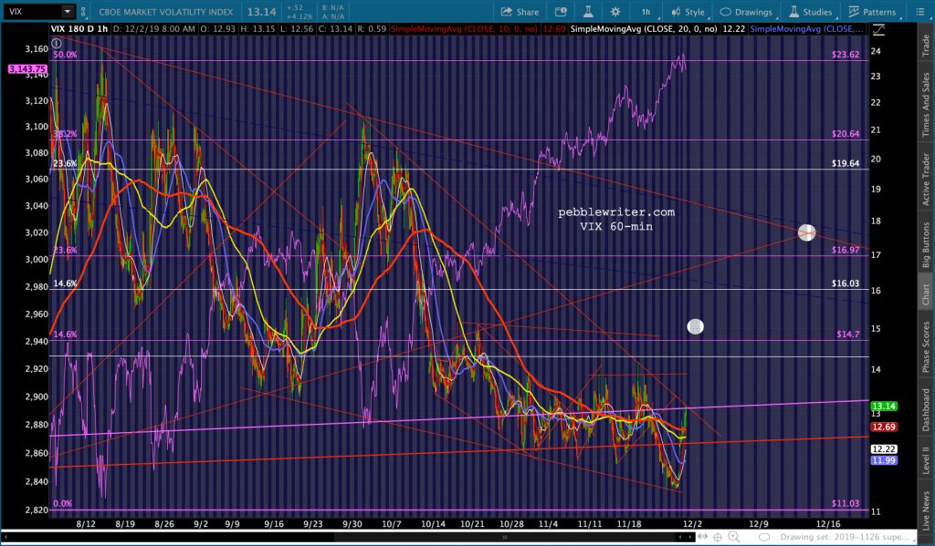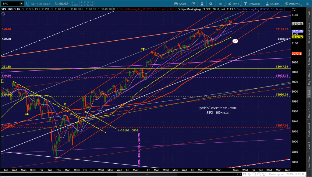 There are many juicy targets well below current levels. But, the most interesting would be the red channel bottom around SPX 3100-3108, about where the SMA20 is. If the red channel breaks down, then we’re looking at a backtest of ES 2.618 at 3076.93 and, if that breaks down, SPX 3047.34.