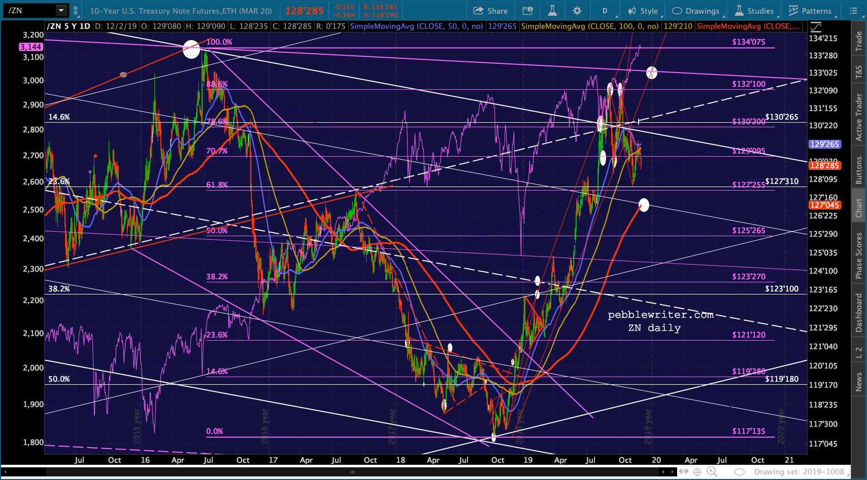 …ZN is backtesting a TL and isn’t all that far away, now, from SMA200 support.