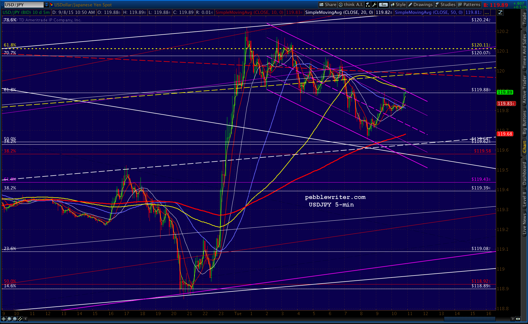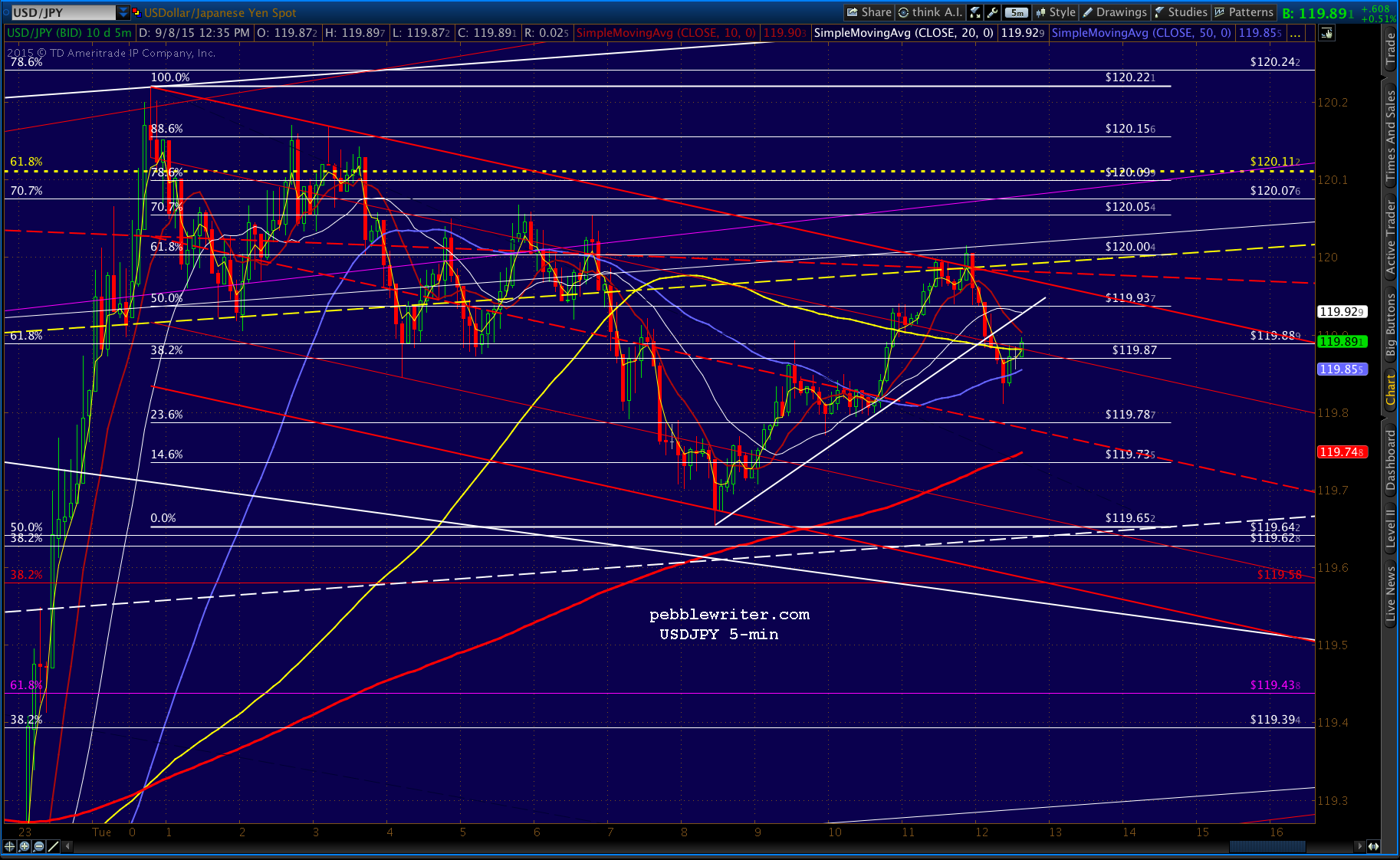 I’d ditch the short in a heartbeat, but USDJPY hasn’t gone anywhere since reaching the purple channel .786 line. It appears as though it wants to dip down and tag the SMA200 or the rising white channel midline as originally discussed this morning.