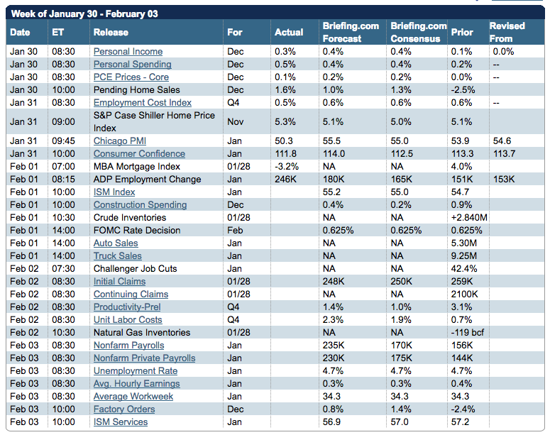 A look at the data so far, and that to come… Spending has outpaced income gains, which means consumers are stretching in the face of (because of) inflation. It’s reflected in the PMI and consumer confidence numbers, which both undershot. ADP employment was a beat, however, which is more fuel for the rate hike fire.