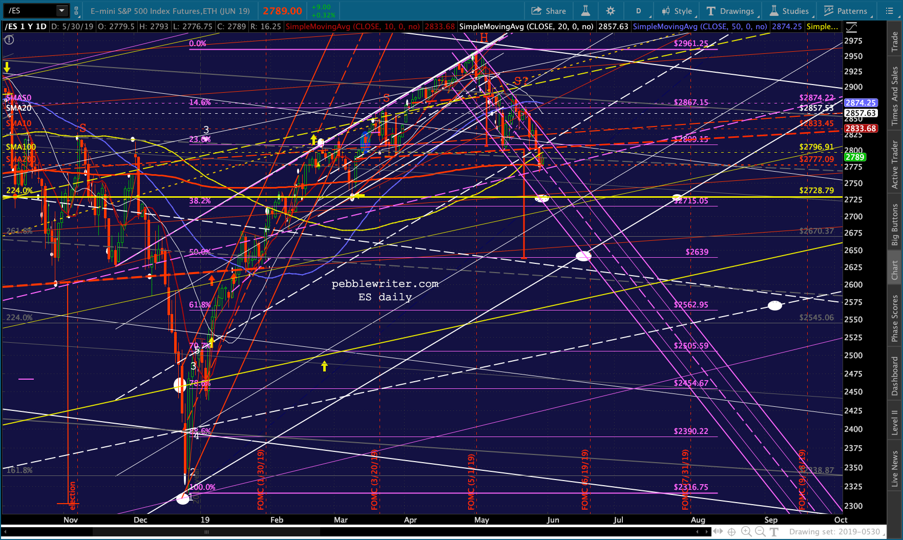 The above would imply that SPX drops to 2722 or even 2703 on Monday. As discussed yesterday, there is a major disagreement between ES and SPX’s 2.24. So, things could definitely get tricky in terms of where to look for bounces.
