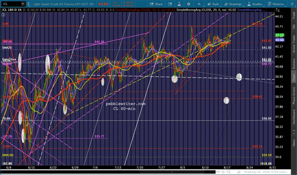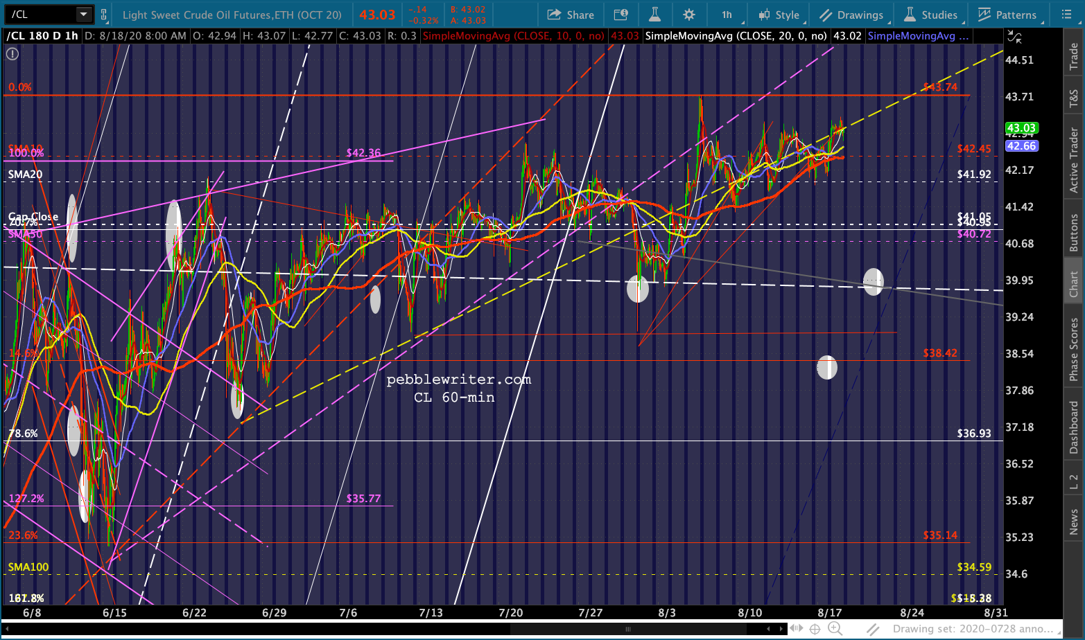 Though it rallied overnight, CL is back at TL resistance. Look for it to pull back to at least its SMA10.