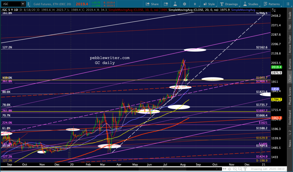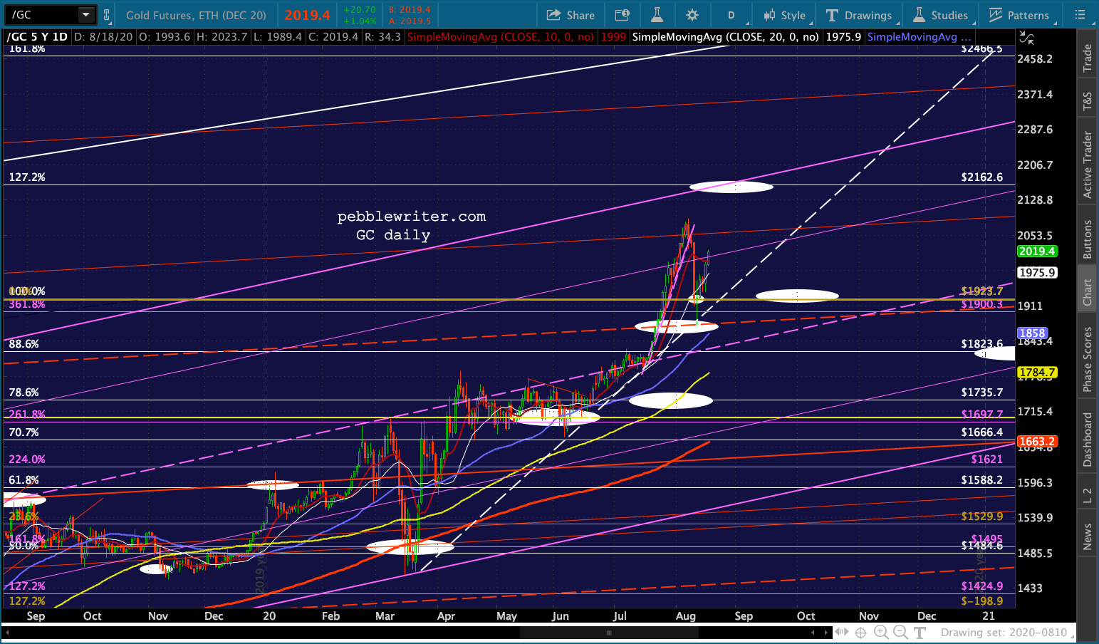 And, gold is continuing its bounce, pushing back up thorough its SMA10.