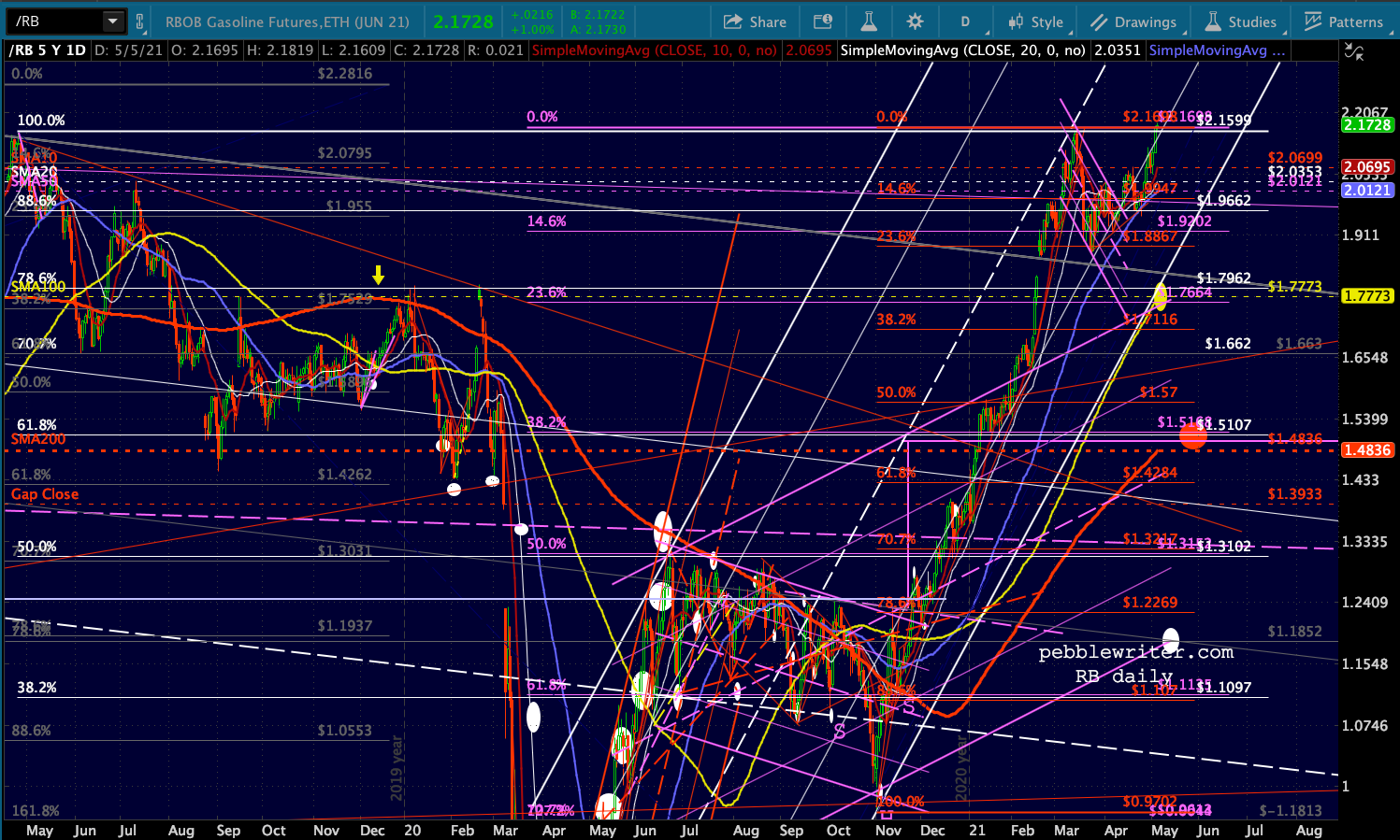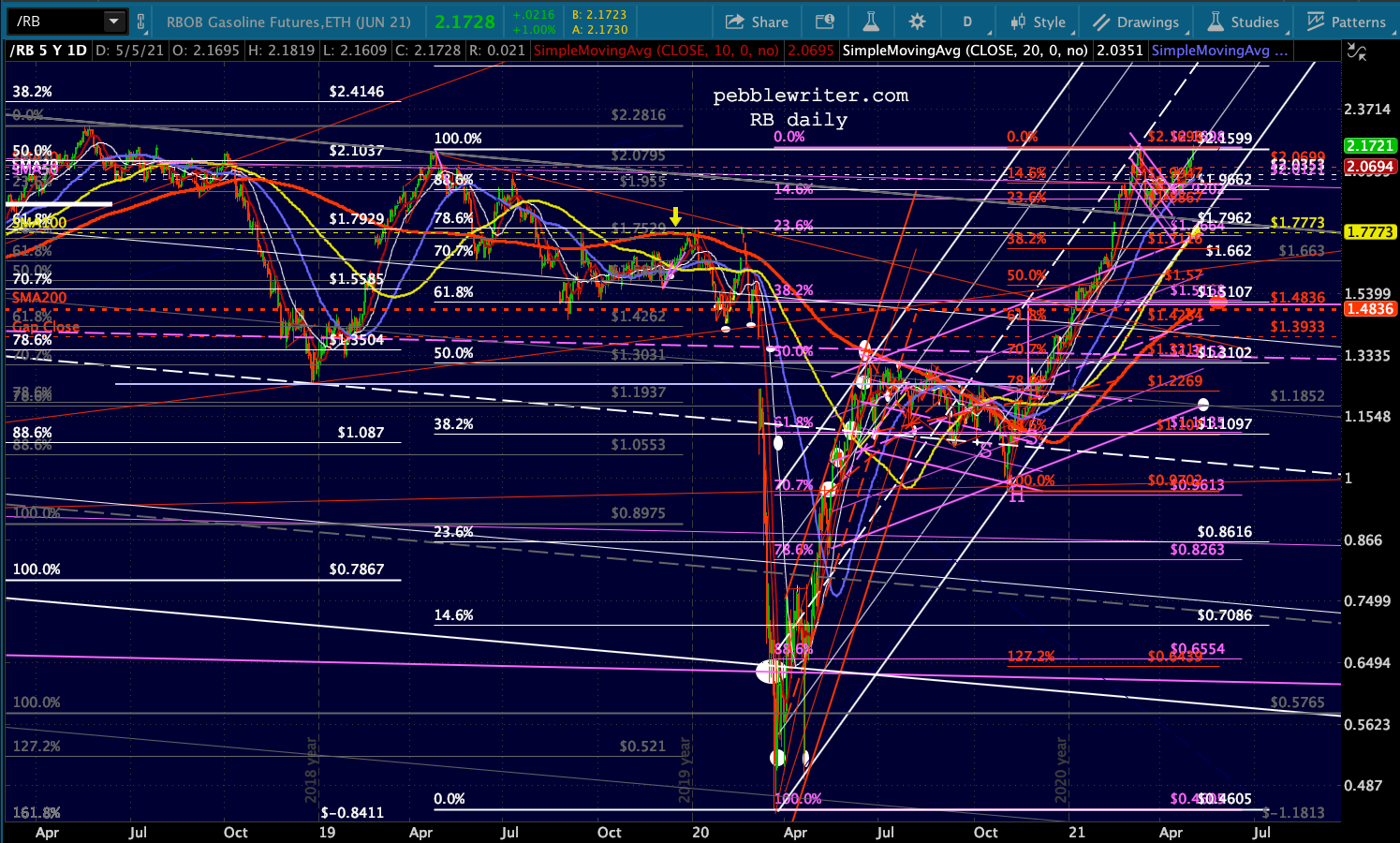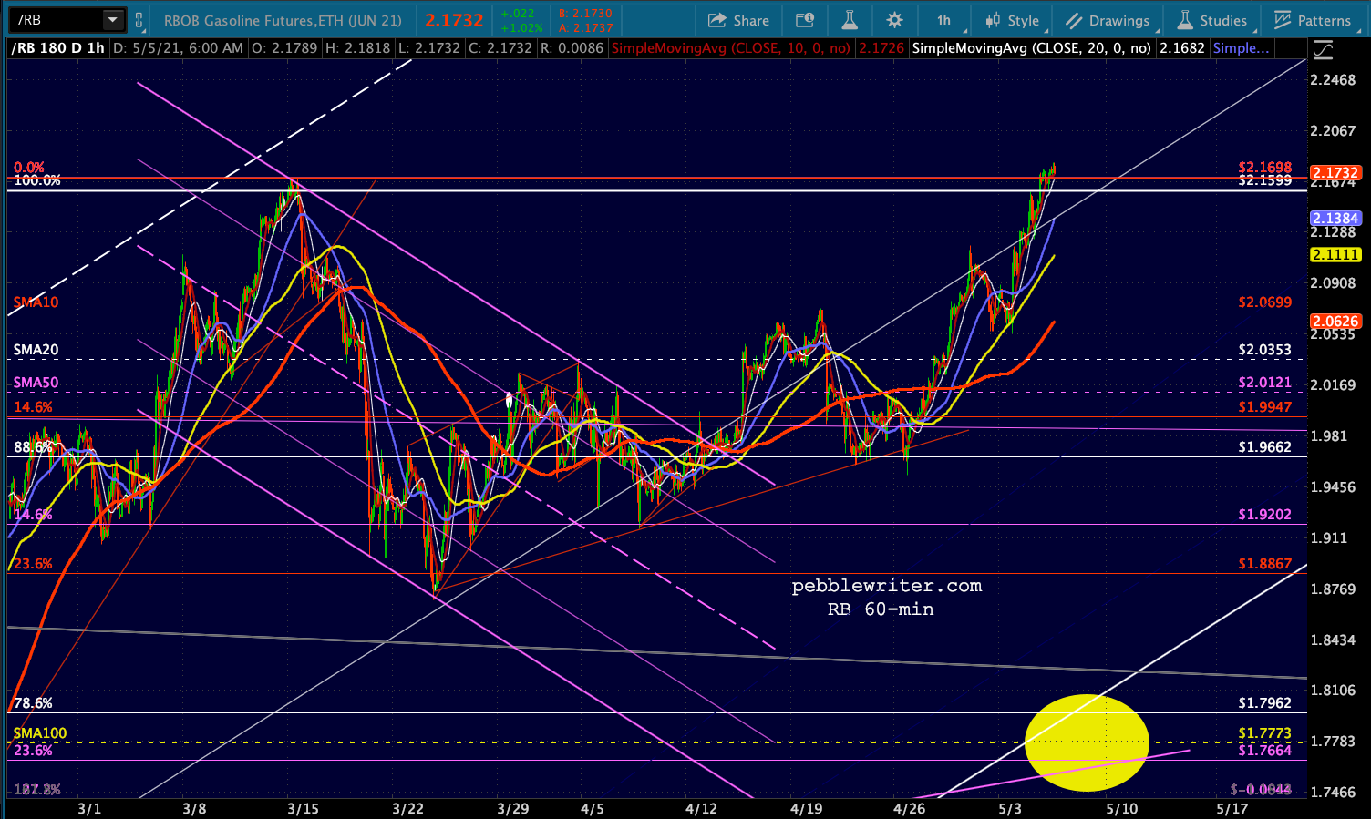 …and RB topped its 4/25/19 highs again. Recall that it did this back on 3/15/21, promptly shedding 13.8% before climbing back to these levels.