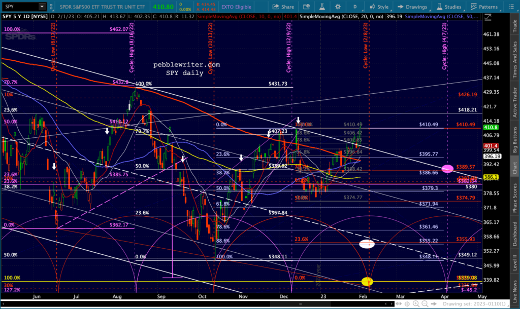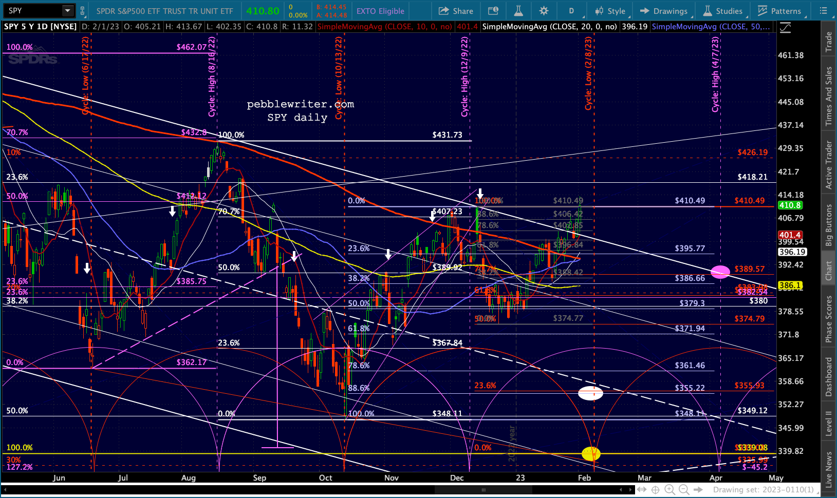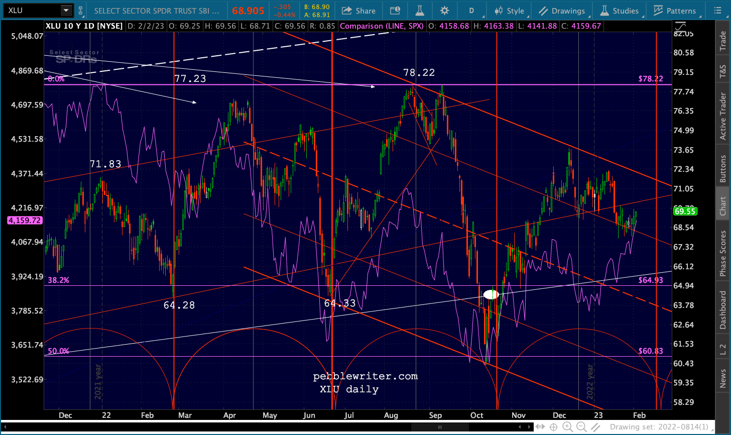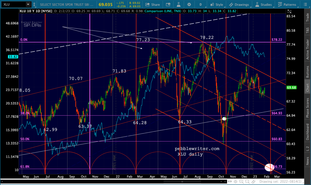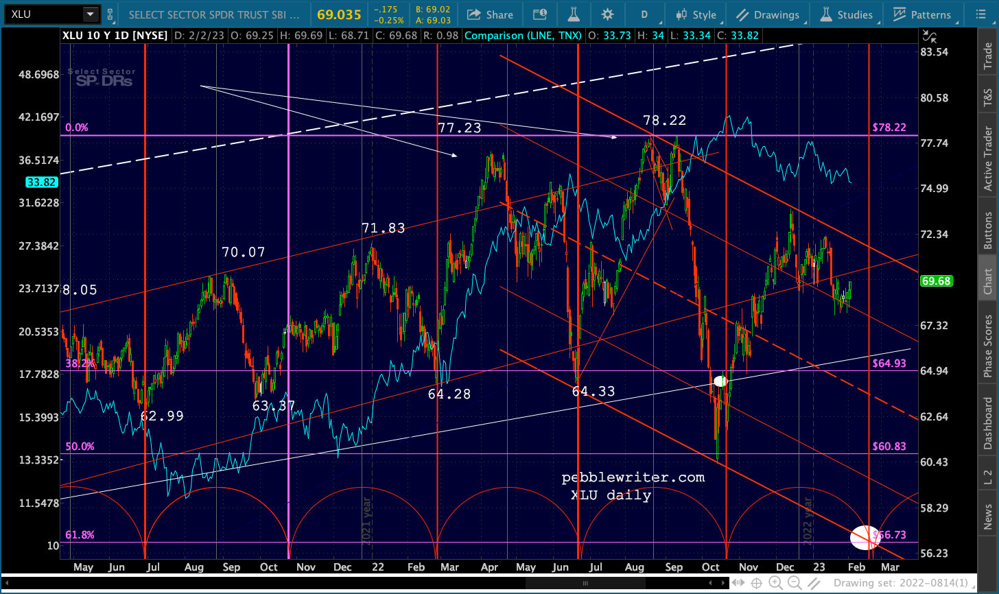 XLU, which first alerted me to the patterns in SPY, says there’s a cycle low coming around mid-Feb.