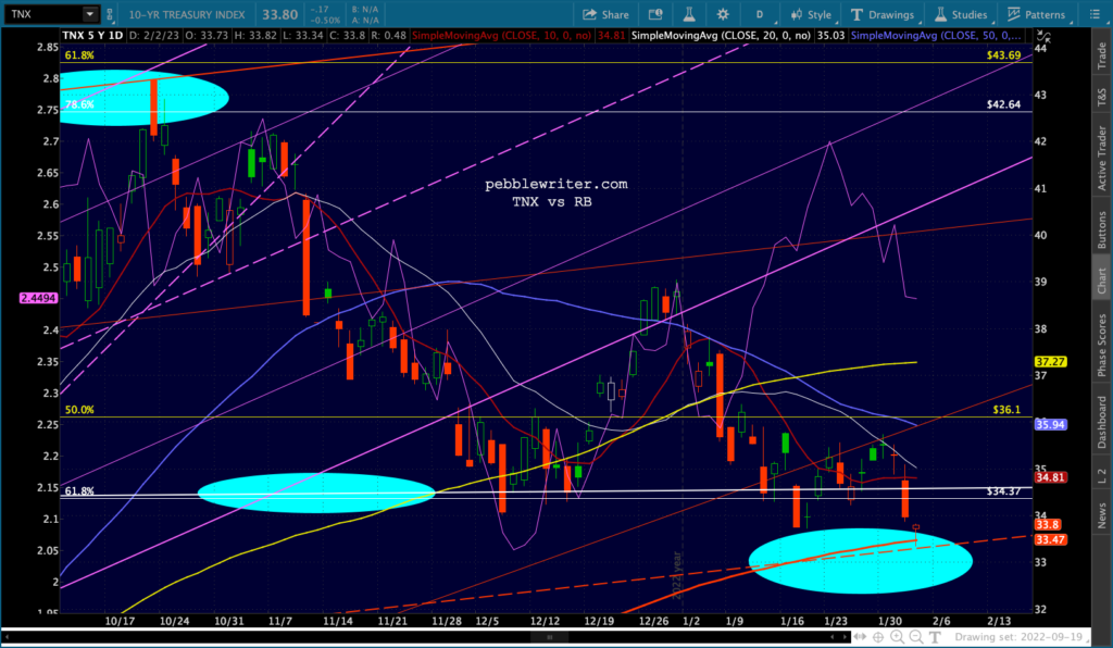 Note that TNX also backtested the midline of the large, well-defined red channel.
